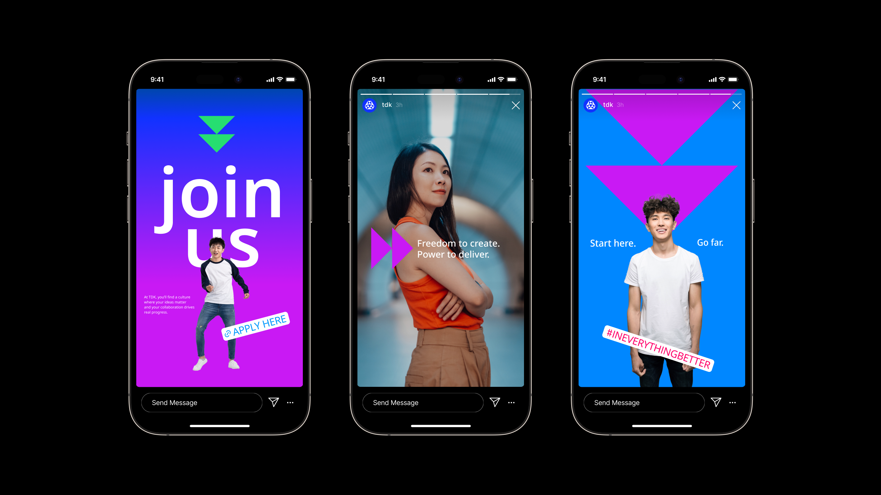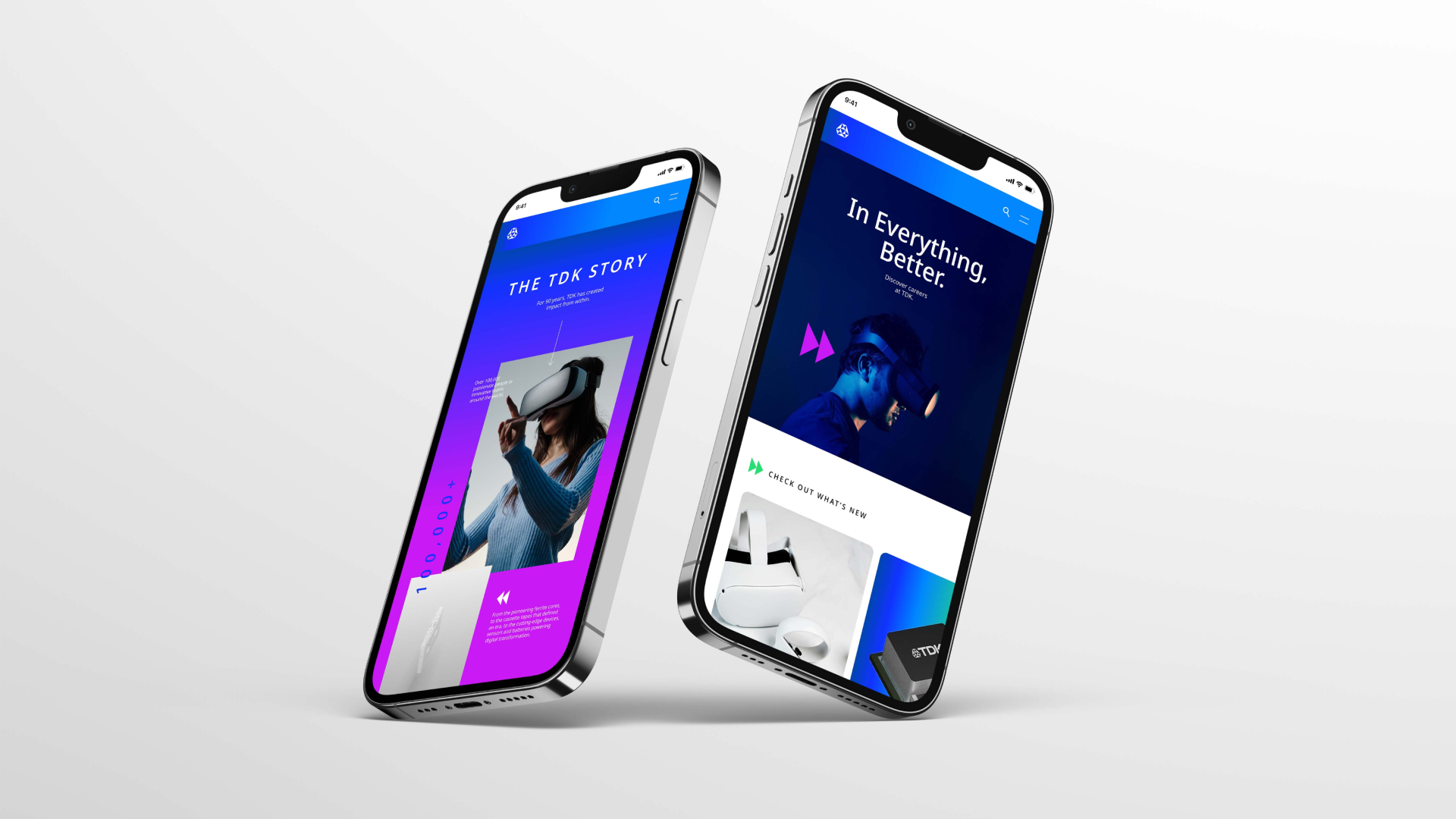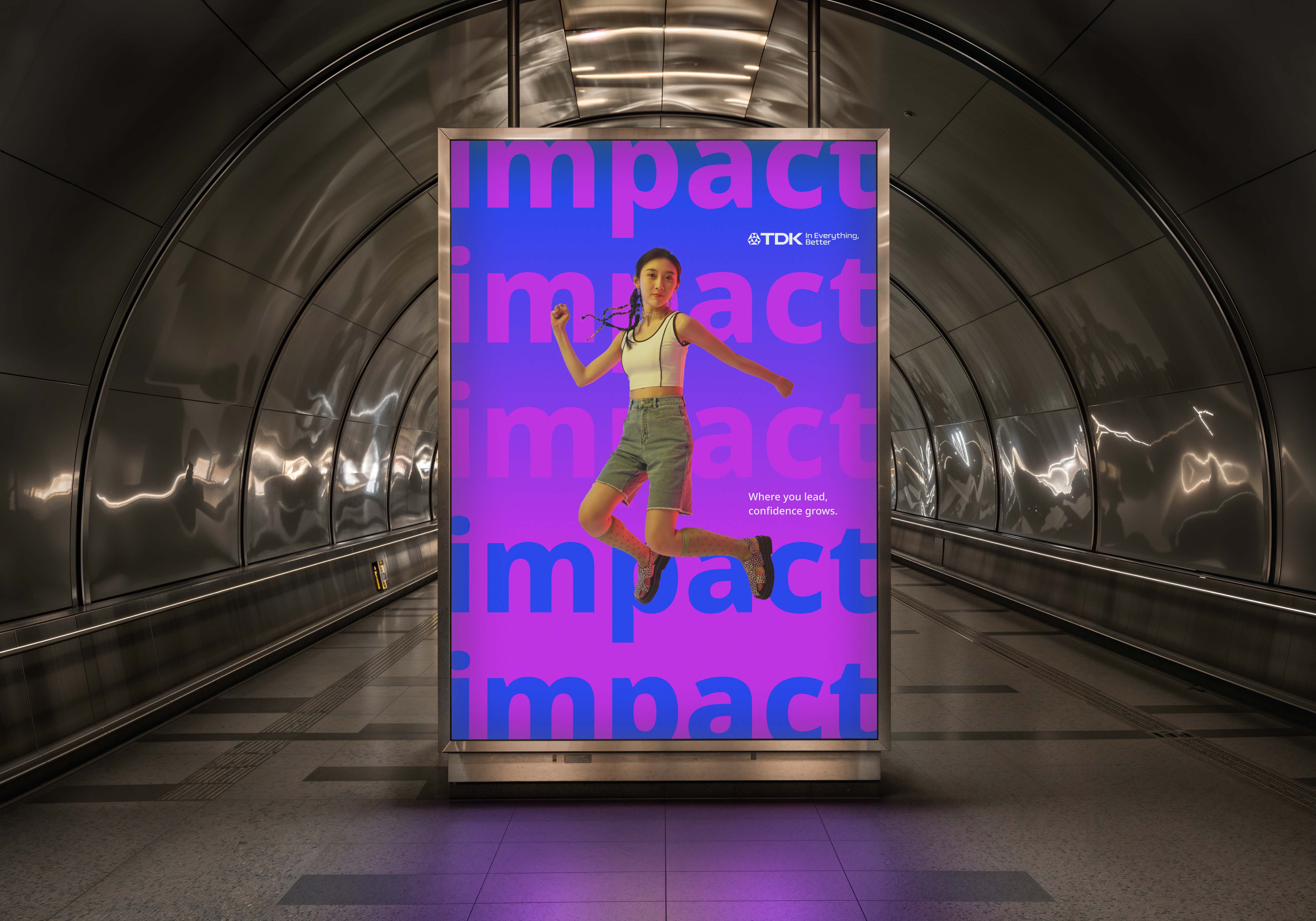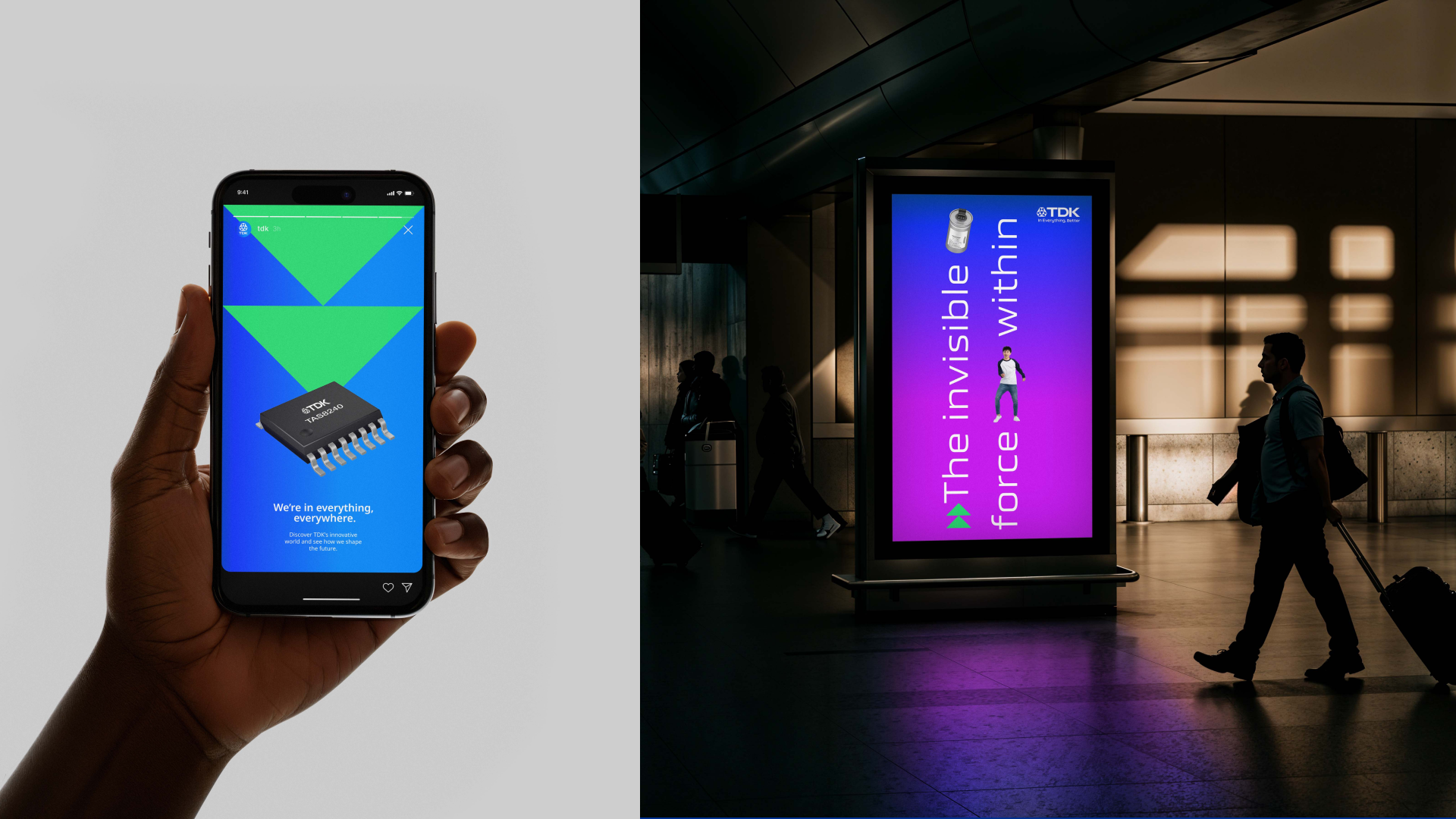 The Interbrand Tokyo team previously created the new brand and identity for TDK. Following this, Interbrand Cologne was tasked with creating the visual identity for TDK’s employer brand. Leveraging elements from the master brand, we designed a custom “Forward Double Triangle”, inspired by TDK's electronics heritage and symbolizing the company's future. We developed a bold and dynamic system focused on TDK’s employees, highlighting current team members while featuring playful and engaging layouts to attract prospective talent.